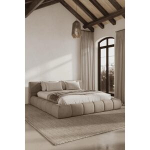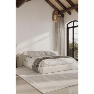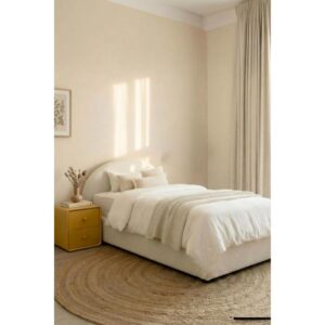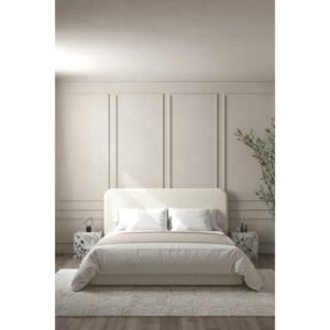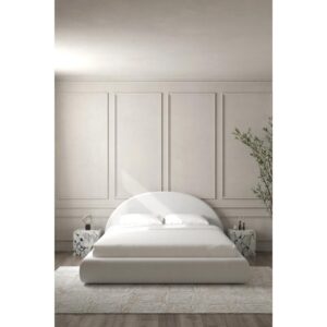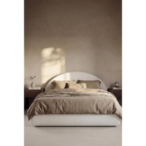 Shakoora Cream Boucle Fabric Bed With Rounded Corner Headboard