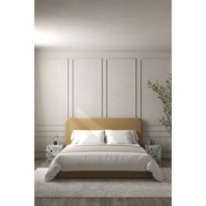 Suhaa Mustard Spice Fabric Bed with Rounded Corners Headboard