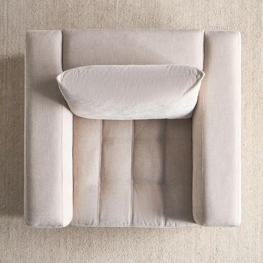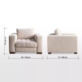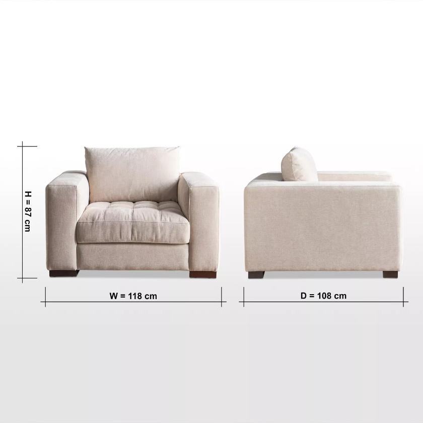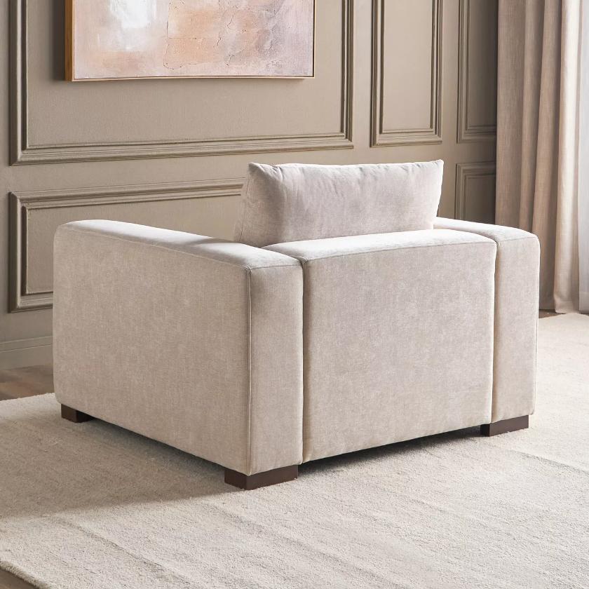 Experience exceptional comfort with this elegant Athar Fabric Armchair, thoughtfully designed to elevate any living space. Generously filled with plush feathers in both the seat and back cushions, it offers a perfect balance of softness and supportive comfort. The contemporary frame is highlighted by broad track arms and deep seating, creating an inviting and luxurious lounging experience. Refined in its appearance yet indulgent in feel, this armchair blends modern style with everyday comfort, making it an ideal choice for adding warmth, sophistication, and relaxation to your home.