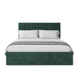 The Idris Extra King Size Bed is designed to offer luxurious comfort with lasting durability. Crafted with a robust solid wood frame, it ensures exceptional strength and stability. Upholstered in rich velour velvet, the bed adds a soft, elegant texture that enhances its modern appeal. Its sleek, refined design blends effortlessly with a variety of bedroom styles, creating a calm and stylish retreat. With soft firmness for plush comfort, the Idris Bed invites you to relax in indulgent sophistication.