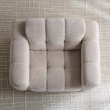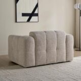 Elevate your living space with this elegant Kiyan Fabric Armchair that blends modern design with exceptional comfort. Crafted on a solid wood frame for lasting durability, it features refined biscuit tufting that adds a touch of sophistication. Broad, generously padded arms enhance relaxation, while the premium fabric upholstery ensures enduring style and appeal. Designed for everyday comfort and longevity, this armchair comes with a two-year warranty against manufacturing defects. Professional cleaning is recommended to preserve its pristine look.