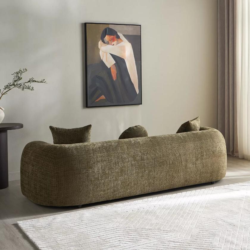 Redefine your living space with this elegantly curved Moaz 3-Seater Fabric Sofa, crafted to combine contemporary sophistication with superior comfort. Its sculptural form creates a striking focal point, while the modular design allows you to customize the layout to suit your space and lifestyle. Built on a strong wooden frame for lasting durability, it features wide, supportive arms that enhance relaxation. Plush scatter cushions add extra comfort and styling flexibility. Ideal for modern homes, this sofa seamlessly blends refined aesthetics with everyday practicality, making it a timeless addition to your interior.