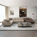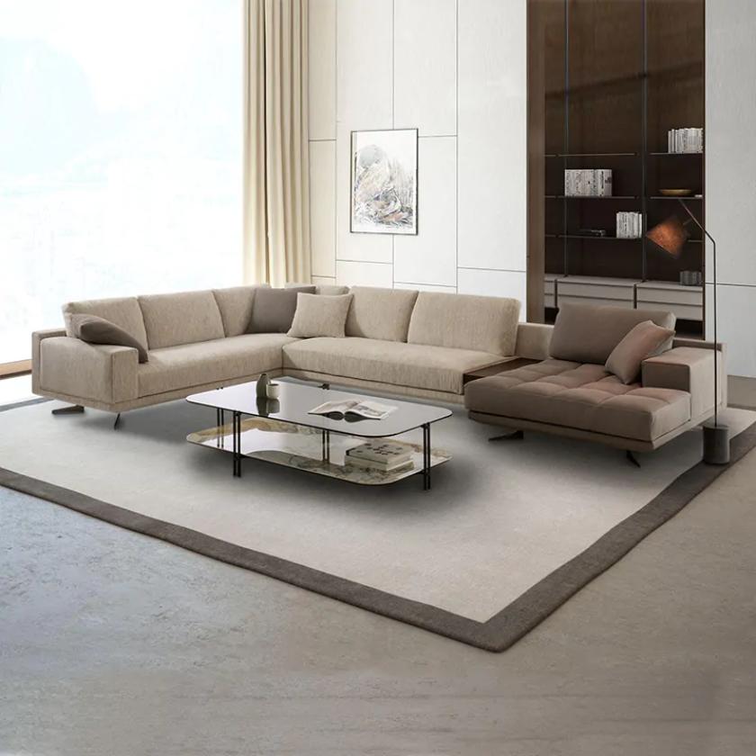 The Muzaina Sectional Sofa combines modern design with versatile functionality. Featuring soft seating and polyester fiber back cushions, it offers excellent comfort and support for everyday relaxation. Upholstered in skin-friendly fabric, it provides a soft and pleasant feel while maintaining durability. Designed with tall metal legs and a low backrest, this sofa is perfect for placing in the center of a room, adding a light and contemporary look to your space. With multiple configurable elements, you can customize the layout, size, armrest style, and upholstery to perfectly suit your taste and living needs.
