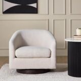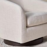Bring refined comfort to your modern living space with this elegantly designed Nawar Fabric Swivel Armchair. Crafted with a sturdy wooden frame and upholstered in premium antistatic fabric, it offers lasting durability and a smooth, luxurious feel. The foam, fibre, and non-woven bag seat filling provide exceptional comfort, while the smooth swivel base adds ease and relaxation. With its sleek silhouette and contemporary appeal, this armchair blends effortlessly into modern interiors, creating a stylish spot for lounging in everyday luxury.