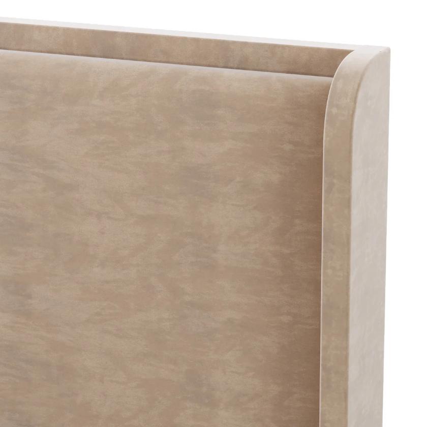 The Qudus Extra King Size Bed embodies understated elegance with a calming, contemporary appeal. Upholstered in soft, sand-toned terylene fabric, its warm neutral shade creates a serene atmosphere and blends effortlessly with both modern and classic interiors. Built on a sturdy solid wood frame, it offers lasting durability and stability. Designed with medium-firm support for balanced comfort, the Qudus Bed delivers a perfect combination of refined style, versatility, and everyday relaxation—making it an inviting centerpiece for your bedroom.