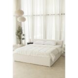 Upholstered in soft off-white boucle, this Sahar Bed transforms your bedroom into a serene and refined retreat. Its low-profile, sculptural design brings a modern, grounded elegance, while the plush, textured fabric adds warmth and tactile comfort. The neutral tone pairs effortlessly with minimalist, contemporary, and softly layered interiors, creating a calm and inviting atmosphere. Thoughtfully designed to balance style and comfort, it serves as a cozy yet sophisticated centerpiece that elevates everyday living with understated luxury.