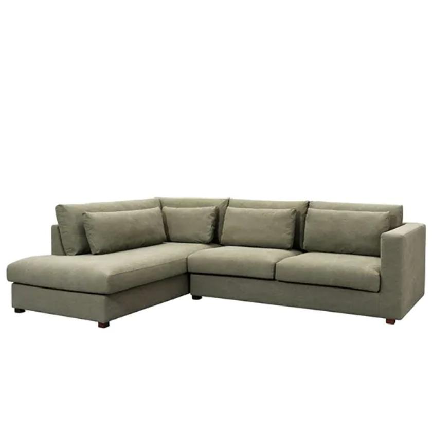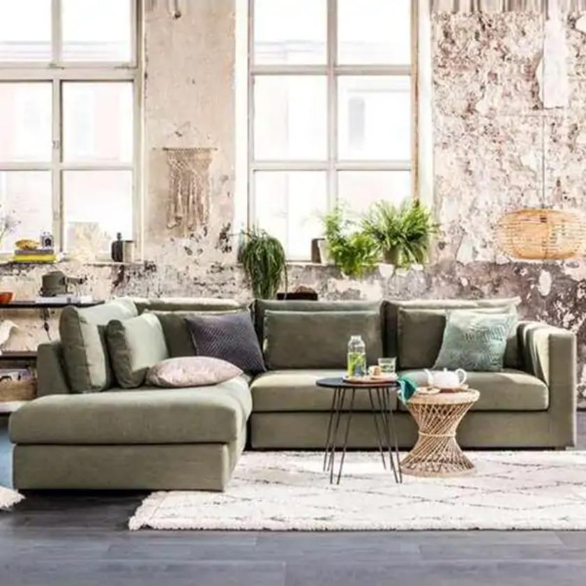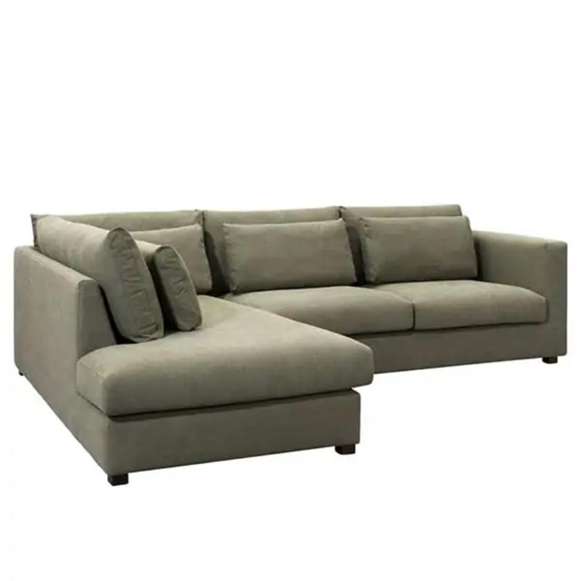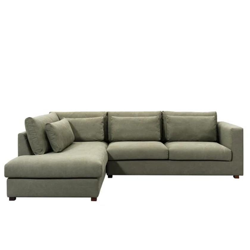 The Shajarah Corner Sofa blends modern elegance with relaxed charm, creating the perfect spot to unwind. Designed for effortless lounging, it features a consciously nonchalant character that adds warmth to any interior. Upholstered in stylish olive green fabric, it brings a rich, contemporary touch to your space. The double row of cushions enhances both comfort and visual appeal, while the front cushions provide extra support. Filled with airy padding, they maintain a soft, inviting look—simply tap them regularly to help retain their shape and plush feel.
