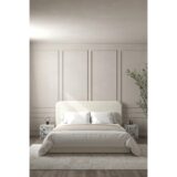 Experience refined comfort with this elegant boucle fabric bed, upholstered in a soft tone that brings warmth and sophistication. The rounded headboard and smooth, curved edges create a clean, calming silhouette, while the textured boucle adds depth and visual interest. Its low-profile frame offers a grounded, contemporary feel, perfect for modern and neutral interiors. Designed for both durability and comfort, this bed blends style with practicality—transforming your bedroom into a serene, inviting retreat.