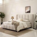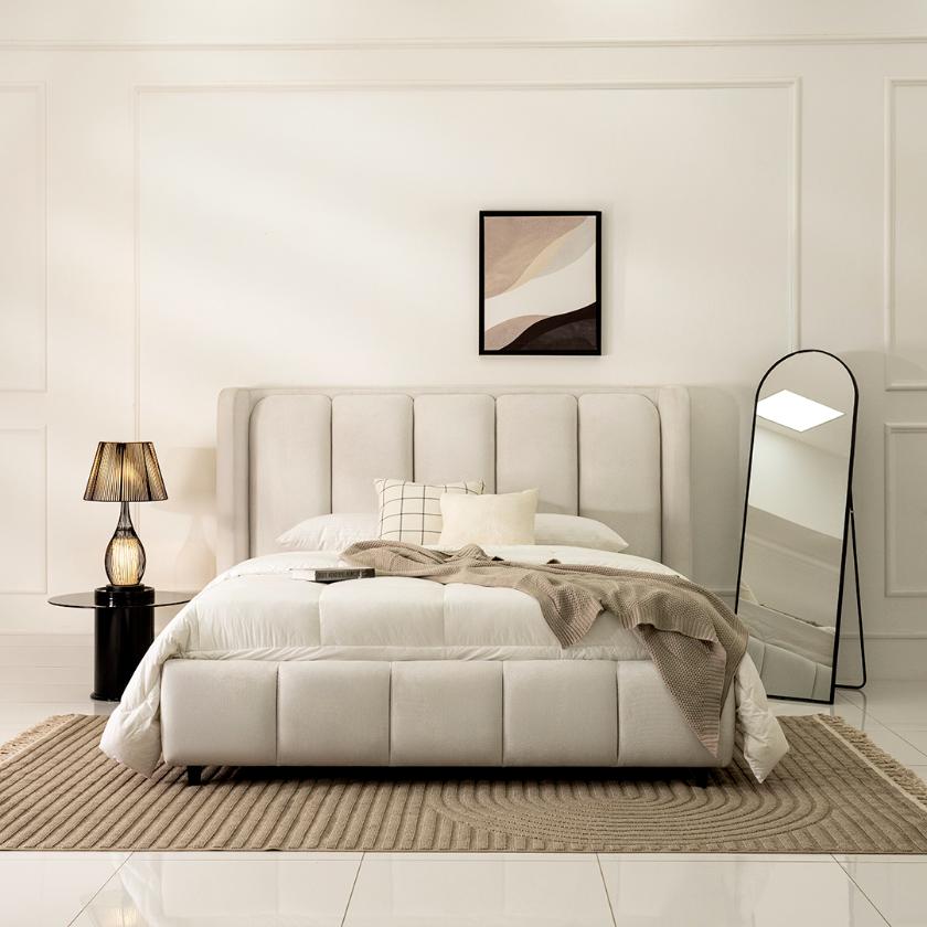 The Sireen Bed blends comfort, style, and functionality in a beautifully refined upholstered design. Its elegant frame adds a soft, sophisticated touch while ensuring lasting support for everyday use. Thoughtfully crafted to enhance both aesthetics and comfort, it serves as a perfect centerpiece for any modern bedroom. Made to order, the Sireen Bed offers customization in fabric and color, allowing you to tailor it to your personal style and seamlessly complement your existing decor.
